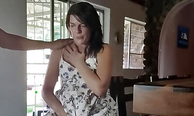 Housewife in sun dress cum ambling after blowjob facial