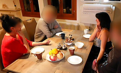 enorme sborrata sotto il tavolo da pranzo di famiglia