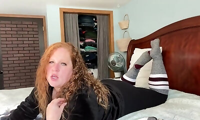 Jaw dropping red head Chloe Cooper deep throats greedily and rides on stiffy with her massive boobs