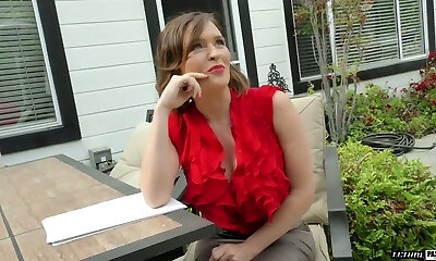 Cheery mature Cameron Skye starts her casting with a tear up and titplay