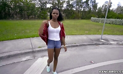 cum on teen ebony at bus stop