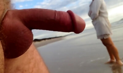 Public erection CFNM beach appointment between lady and male exhibitionist