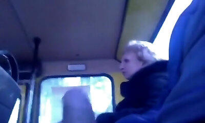 Horny teacher with huge veiny cock flashing and masturbating in bus