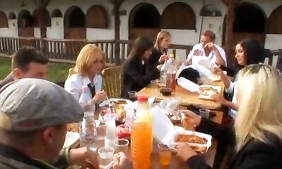 Teacher and college girls use dude's pipe