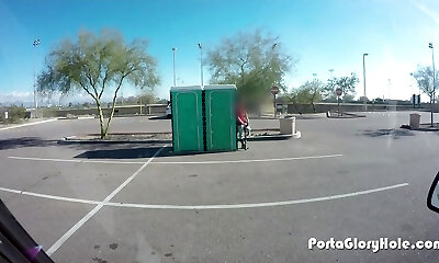 Super sexy hottie thrusts dildo in her butt at a gloryhole