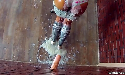 Super-sexy stunner gets her large melons and ass slimed at gloryhole