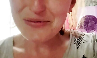 Light-haired MILF with Ginormous, Saggy Tits Rubs her Big Labia & Clit