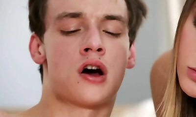 молодая школьница и отчим обнаруживают, что ее двоюродная сестра мастурбирует в своих стрингах, и получают анальный удар