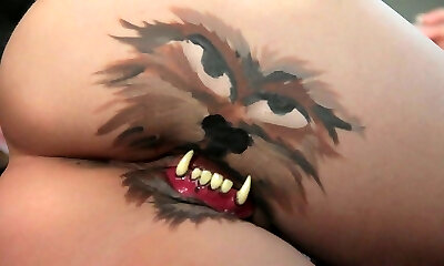 противная накрашенная пума с толстым выменем трахается в тугую мокрую пизду
