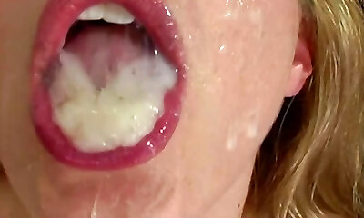потрясающая глотка спермы крупным планом - настоящая любительская дама