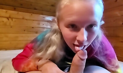 очаровательная тини платиновая блондинка потрясающе делает минет на кастинге с напитком jism