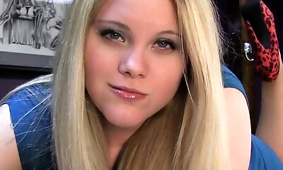 Plump blonde Lizzie peels off and shows her tastey ass and bopping boobies
