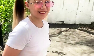 College Girl romping on porch, jism squirted all over.