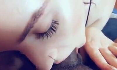 Grubby blowjob with big white cock and ebony tramp’s mouth