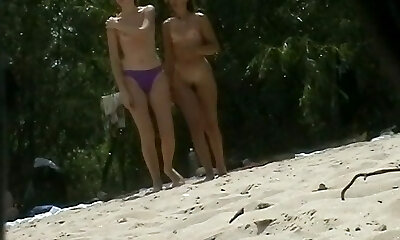 A nude beach hidden cam video presents some hot pussies
