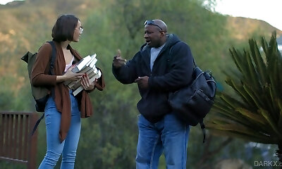 Young white girl experiments with big black cock