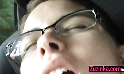 Amateur Teen Blowjob & Jizz Swallow In Car