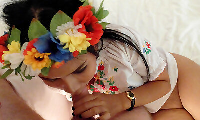 Mexican teen with luscious big chocolate-colored nipples sucks cock