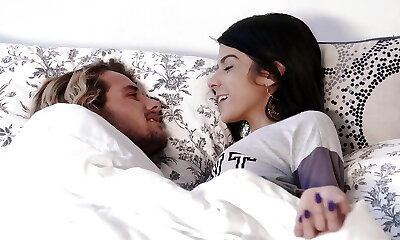 Amateur congenital teen with small tits is ready to kiss her man before fucking