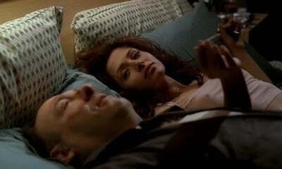 Chesty Curly Brunette With Big Boobs Fucks On Couch
