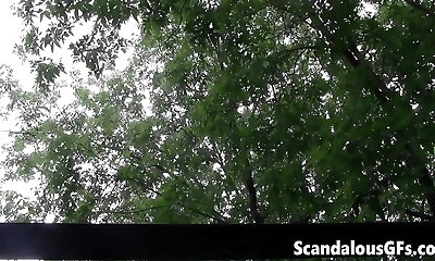 My girl letting her hairless pussy in the luxurious off outdoor breeze