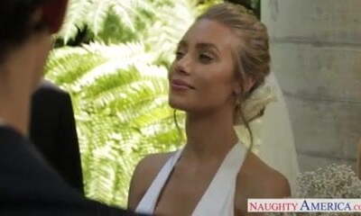 Beautiful bride cuckolds her loser hubby on their wedding day