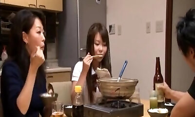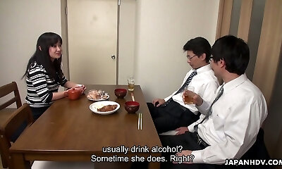 Too tired spouse falls asleep while his fucking partner fucks his wife Risa Kurokawa