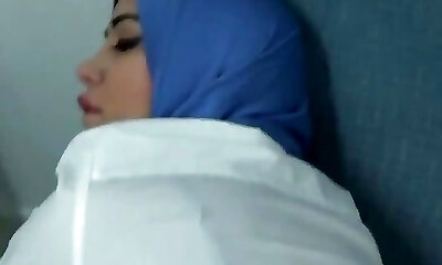 Muslim ponytailed hijab female kisses and rides her bf in public
