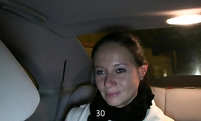 Real non-professional passenger bitch nailed in the backseat