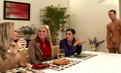 Desperate big-titted bitches are eager to blow the lucky guy's dick dry