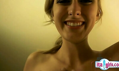 19 year old busty webcam girl with innocent face touches her big innate ti