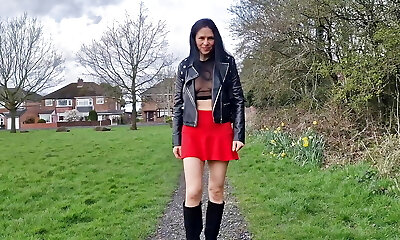 A Young Beautiful Exhibitionist Wifey In A Transparent Dress Showcases Her Pussy And Culo In A Public Park