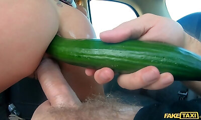 Cucumber in her pussy, cucumber in her ass
