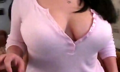 19 year old busty webcam girl with innocent face touches her big innate ti