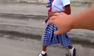 Filipina schoolgirl fucked outdoors in open field by tourist