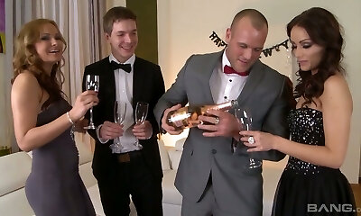 Gorgeous Abbie Cat and her slutty friend love steamy group orgy sessions