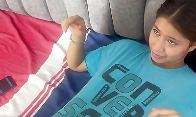 Petite Latina in school uniform let her step-bro cum in her beaver after deep ravage