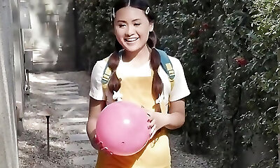 Teen Goddess Ella Voneva Gets Her Asian Pussy Wedged By Diamond Banks' Huge Strap On - LittleAsians FFM 3some